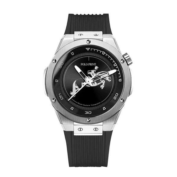 Designed for everyday refinement, this Polo Privé watch blends comfort, balance, and timeless style. SBB brings together the timeless silver case with a bold black dial and all-black silicon strap, creating a premium sport-luxury look. It’s sleek, versatile and designed for men who love a strong yet wearable aesthetic. Featuring a black dial and a silicon, it’s designed to look sharp across workdays and occasions.